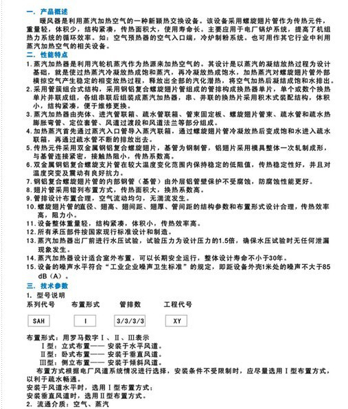 鍋爐配套暖風(fēng)器參數(shù)表