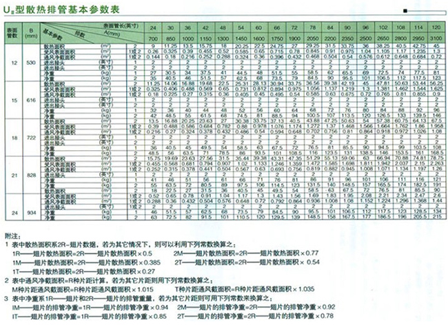 UII型散熱器參數(shù)