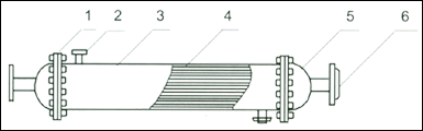 1.法 蘭 2.進(jìn)出口節(jié)管 3.殼 體 4.列 管 5.封 頭 6.進(jìn)出口管